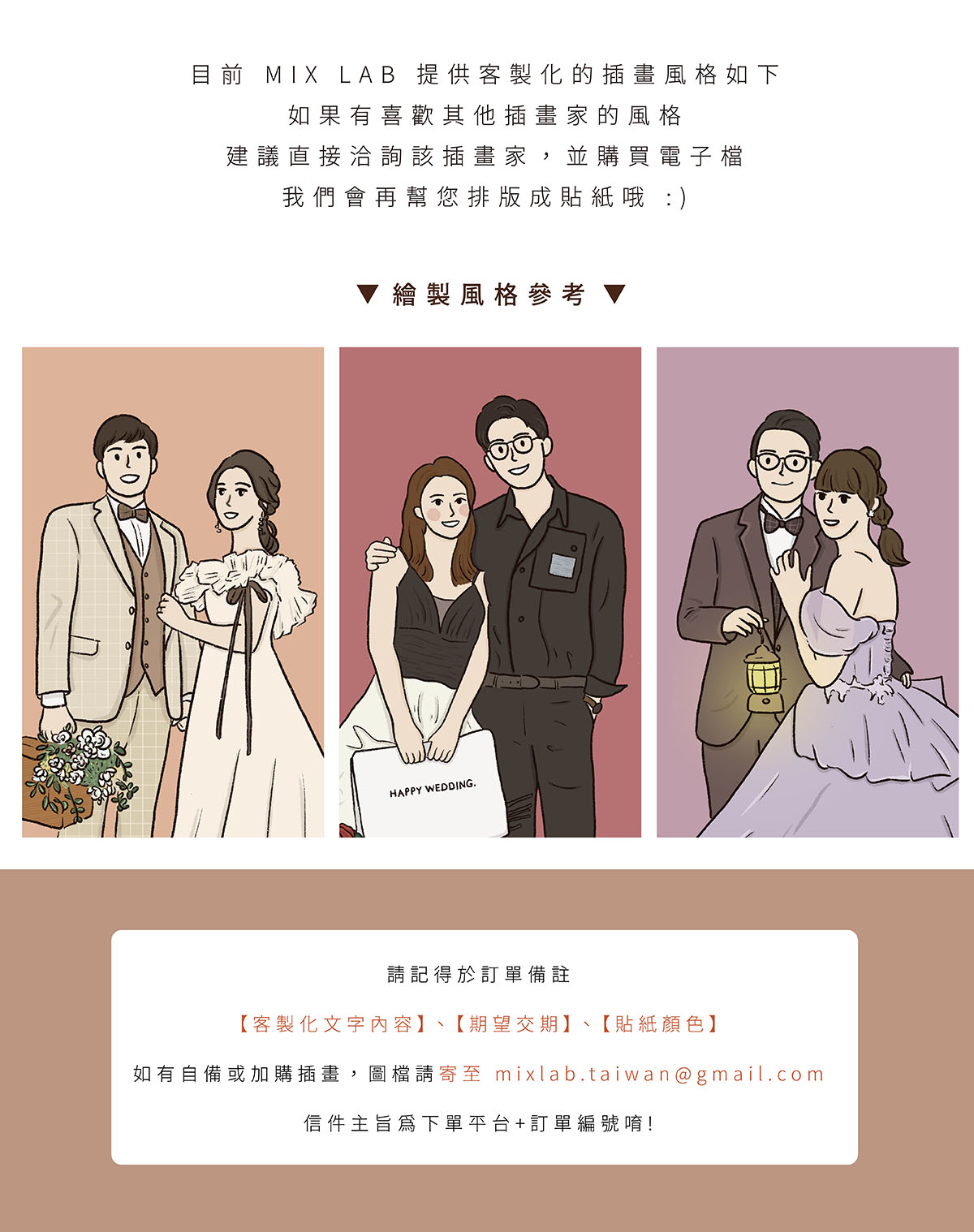 則可以提供我們您有的插畫電子檔,或是另行加購插畫服務唷!