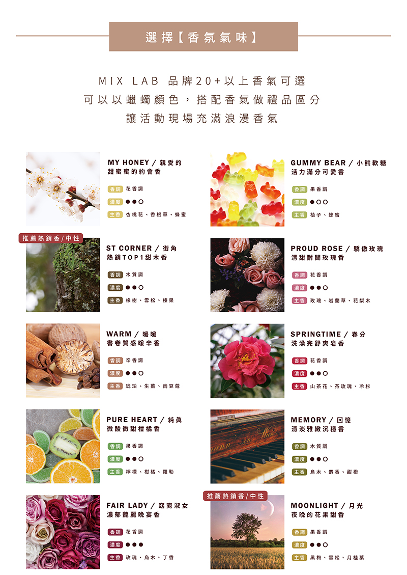 如果有香氣選擇障礙,可以參考標示【推薦熱銷香】的香氣