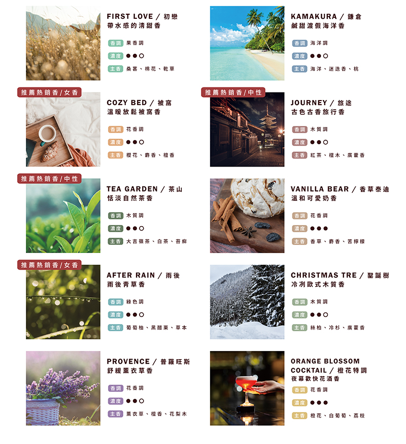 如果有香氣選擇障礙,可以參考標示【推薦熱銷香】的香氣