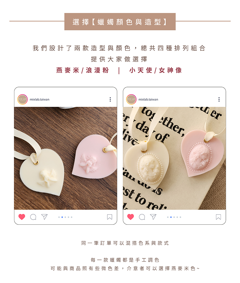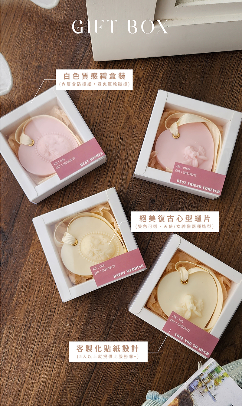 MIX LAB 獨家設計心型香氛蠟磚,搭配純真小天使、復古女神像造型