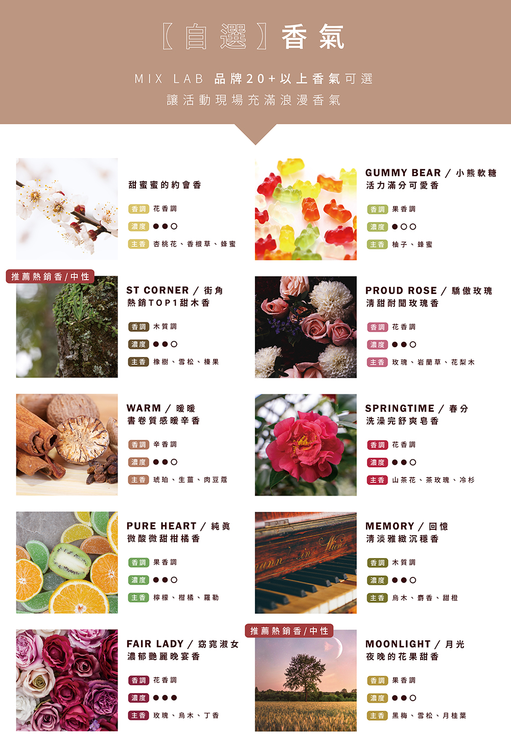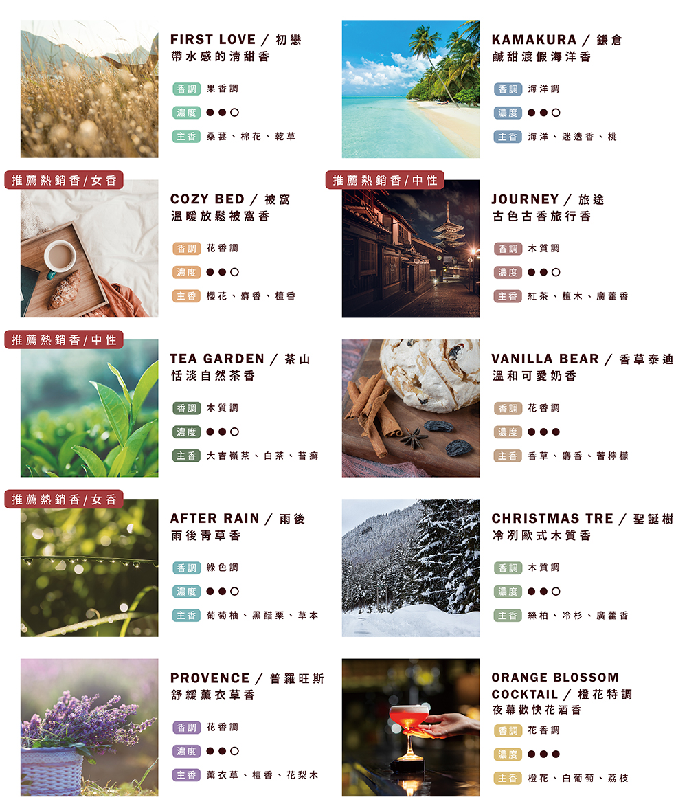 如果有香氣選擇障礙,可以參考標示【推薦熱銷香】的香氣