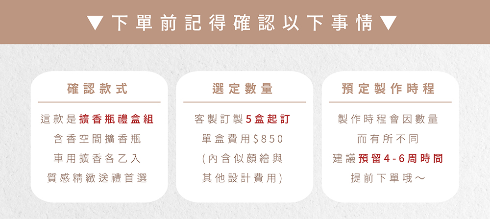 可以為每一盒禮盒選擇香氣,並可安排不同色系&文字的排版