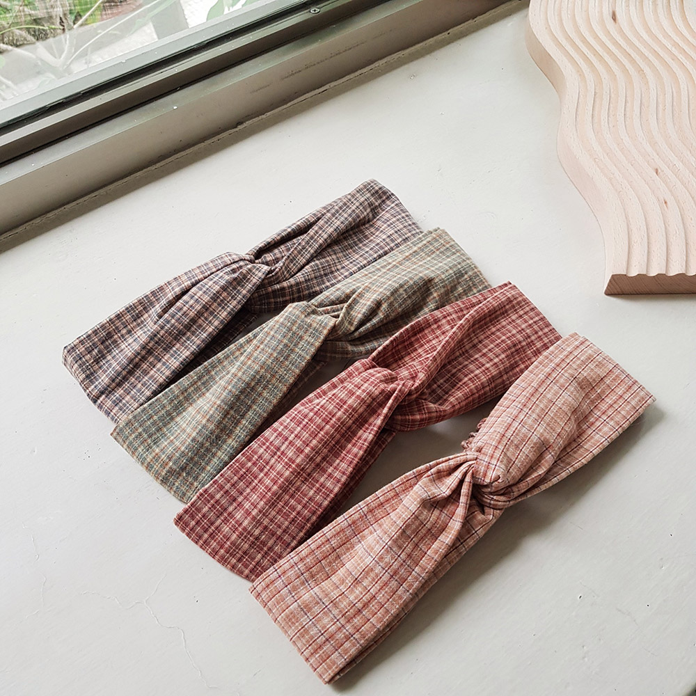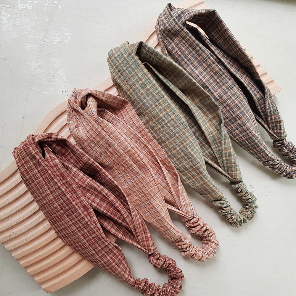 復古細格紋4色 | 交叉鬆緊髮帶